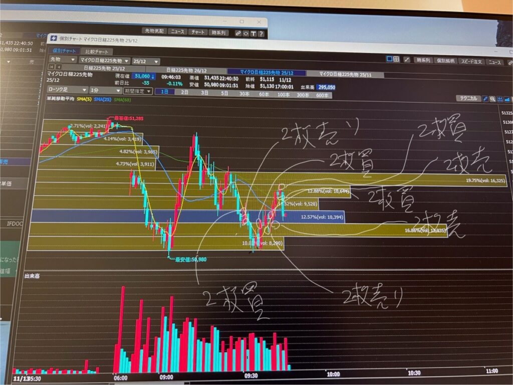 2025年11月12日。日経平均先物での午前9時半頃から取引。4回トレードして、-222円、-272円、-544円、-1144円で合計-2182円。 反省点 ・そもそもメンタルの調子がよくないのにトレードをしようとしてしまったこと ・方向性がいまいちはっきりしないと感じて... -